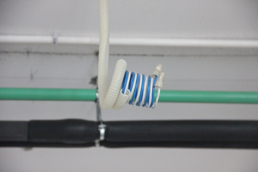 水管頂面排布、橫平豎直,用吊筋固定,熱水管及循環(huán)水管進(jìn)行保溫處理