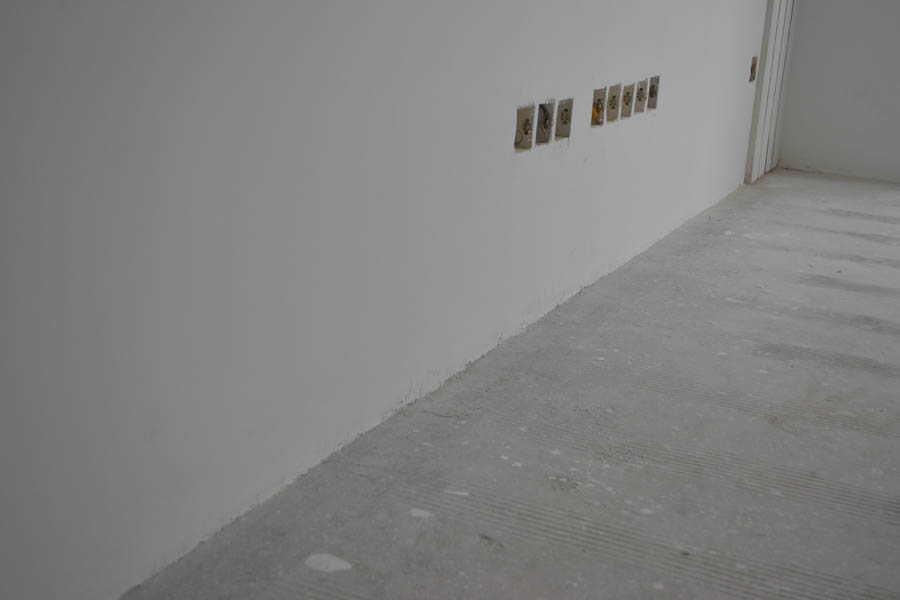 乳膠漆前,膩?zhàn)颖仨毰驳降孛妫瑖?yán)禁有漏批,保證后期踢腳線安裝垂直平整