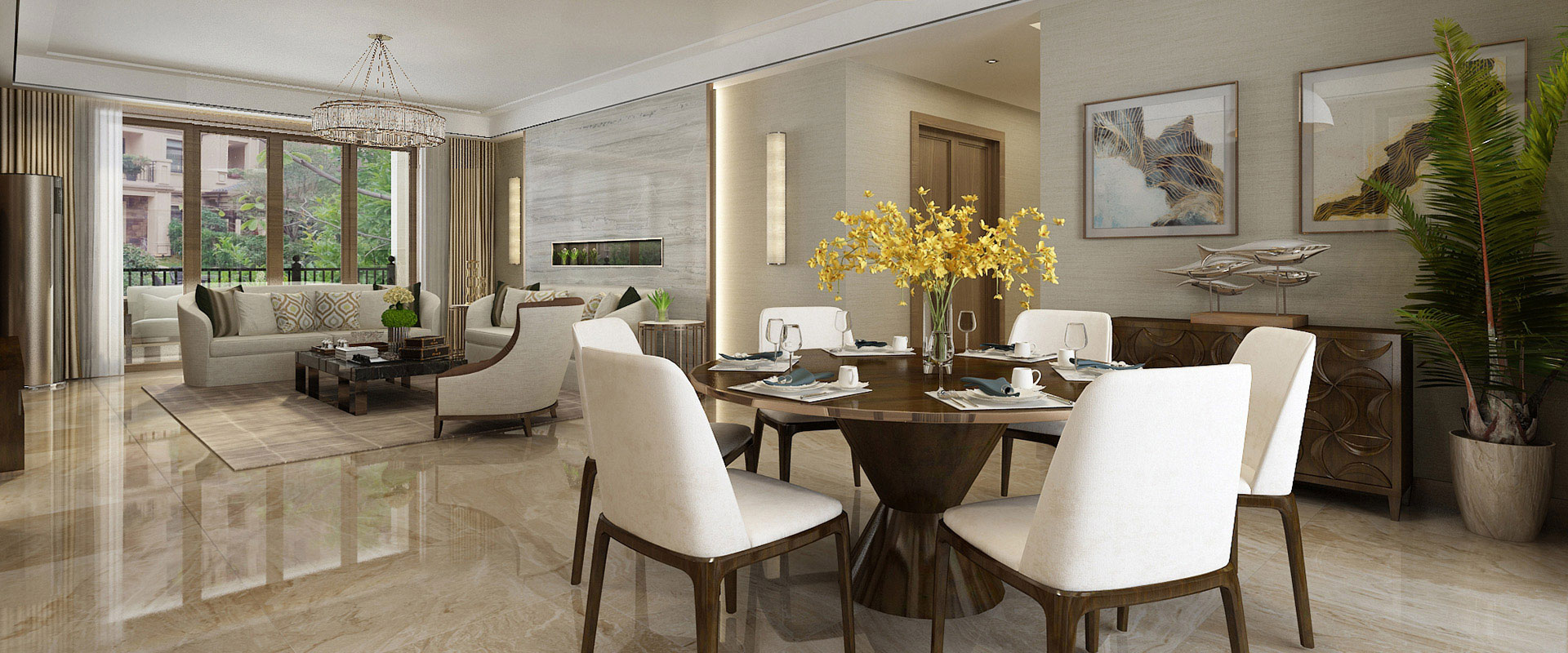 沙發(fā)將客餐廳分成兩個(gè)功能區(qū)域,家具配飾簡(jiǎn)潔的造型、完美的細(xì)節(jié),營(yíng)造出時(shí)尚前衛(wèi)的感···...
